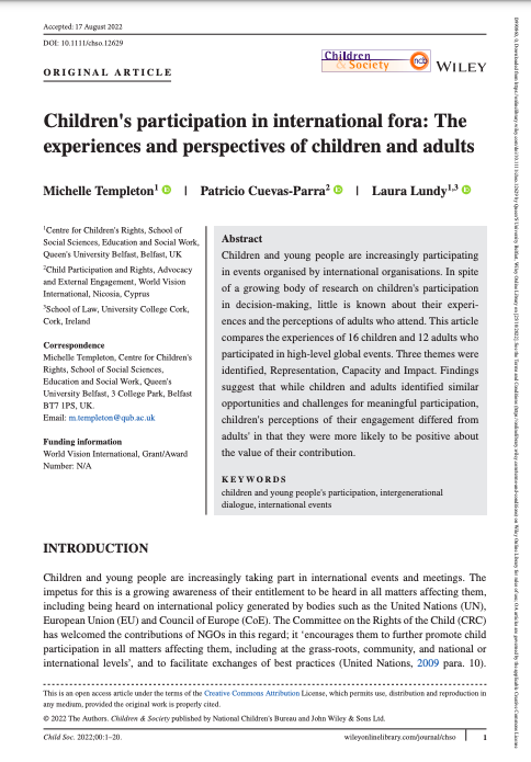 Templeton, Michelle, Cuevas-Parra, Patricio & Lundy, Laura, 2022, published in Children & Society